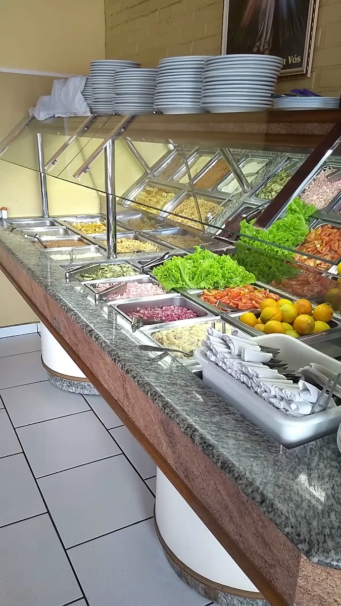 O ambiente é simples, é pequeno mas a comida e o atendimento são ótimos. O buffet tem opções básicas e a carne vem da cozinha conforme a escolha. Vem também uma porção de batata fritas E tem de opção de bebidas refrigerante e suco na jarra. Gostei e recomendo.